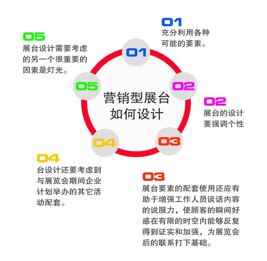可見,營銷型展臺概念的提出,正是打破了企業(yè)對于展臺的傳統(tǒng)認識。事實證明,傳統(tǒng)觀念中的展臺為了參展而參展,不指望能在展會上接到多少單,只是露個臉,占個位,有些更是政府指定參加的,而營銷型展臺構打破了企業(yè)傳統(tǒng)的展覽觀念,就是要明確展臺的營銷職能,以營銷為核心目標來進行展臺搭建服務。