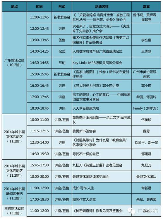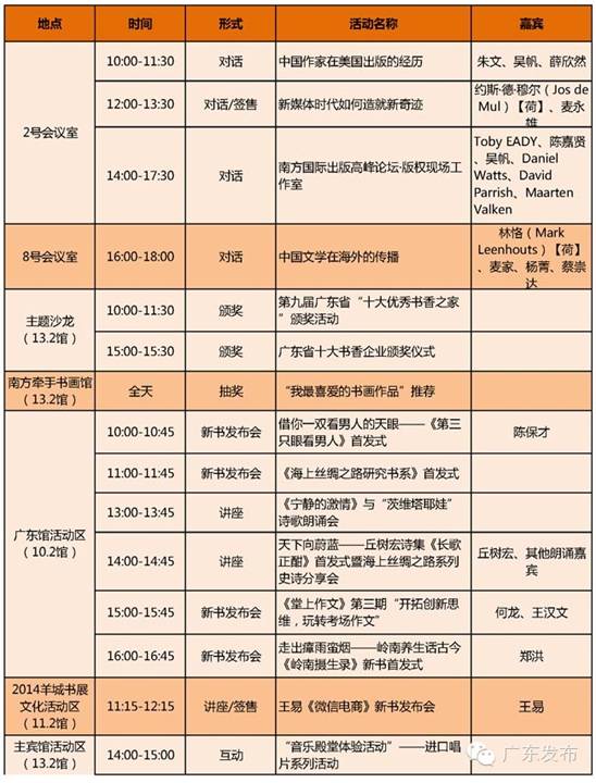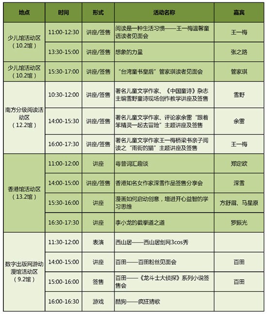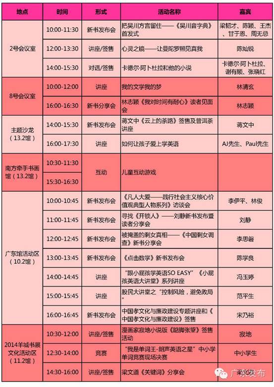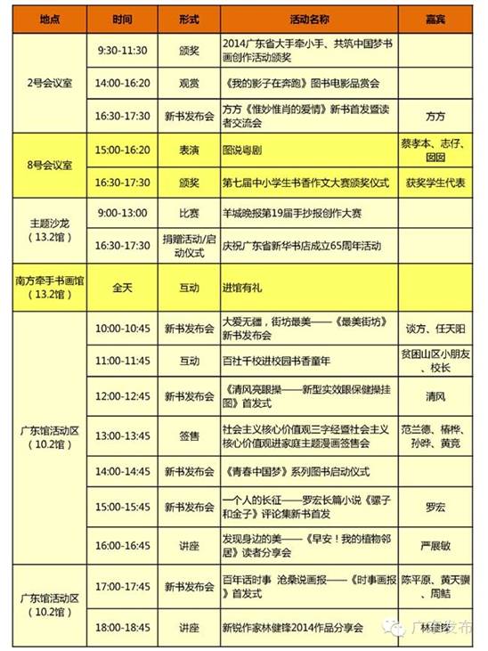 2014年廣州南國書香節(jié)7天活動(dòng)時(shí)間表
