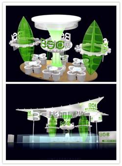 環(huán)保是近近幾年比較流行的話題,綠色成為了時尚新的的代名詞,隨著環(huán)境保護意識的增長,人們向往自然,喝天然飲料,用自然材料,渴望住在天然綠色環(huán)境中,這對世界各國展覽設(shè)計理念影響很大,在展臺中創(chuàng)造自然的舒適氣氛,強調(diào)自然色彩和天然材料的應(yīng)用,采用許多民間藝術(shù)手法和風格。在此基礎(chǔ)上設(shè)計師們不斷在“回歸自然”上下功夫,創(chuàng)造新的肌理效果,運用具象的抽象的設(shè)計手法來使人們聯(lián)想自然。目的是讓人們在喧囂的都市里回歸心靈的那一份寧靜。