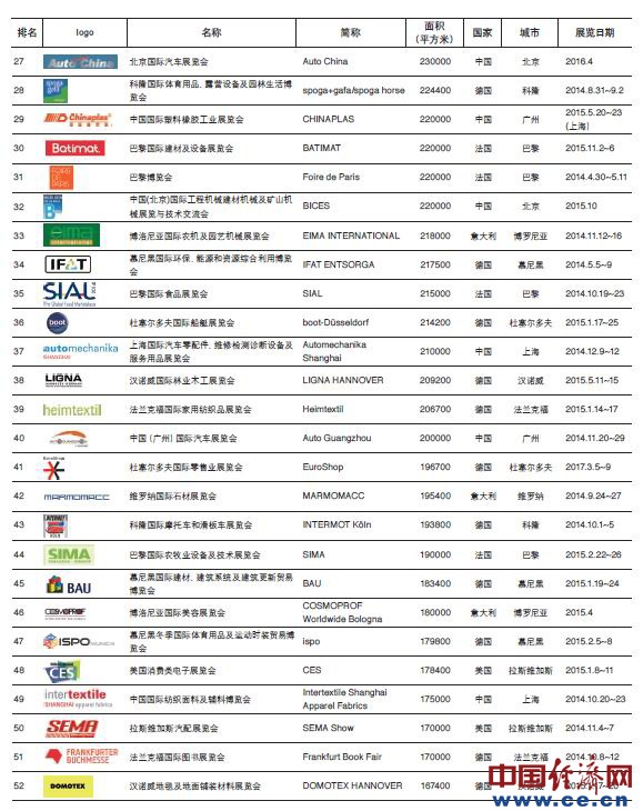 4. 排名采用2013年12月31日前最近一屆展覽的數(shù)據(jù)。