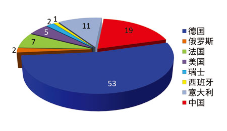 德國作為世界大型商展的主導(dǎo)力量至今無人能撼,但發(fā)展速度略低,在2013年世界商展100大排行榜中,德國展覽超過半數(shù),達(dá)到53席。中國比上年再增1席,從18席增加到19席,為鞏固中國在世界展覽中第2大陣營的地位又添一磚。美國也從危機(jī)中復(fù)蘇,在100大榜中從4席增加到5席。榜單中其他國家均保持了自己的地位:法國8席、俄羅斯2席,瑞士2席、西班牙1席,見圖1。