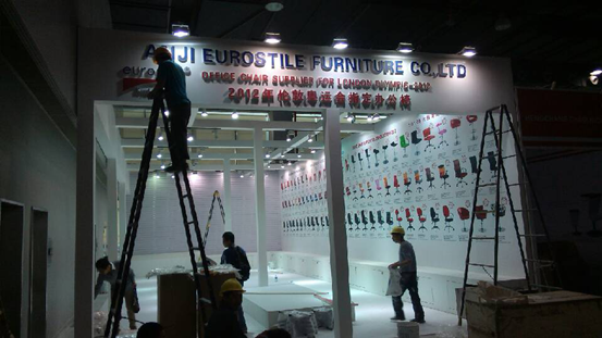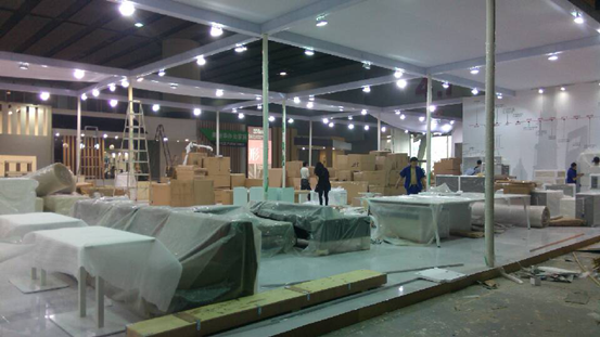 2014廣州辦公家具展后天開展,畢加工程隊伍全力布展
