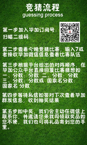 畢加展覽從2014年6月20起推出“我愛世界杯”的大型球迷競猜微信活動(dòng),只要您加入畢加訂閱號,成為我們的一員,您就能參與到這場球迷的熱潮中來,投出您的一票,給您的球星加油,為您的球隊(duì)吶喊,刷微信,贏大獎(jiǎng),您還等什么呢?