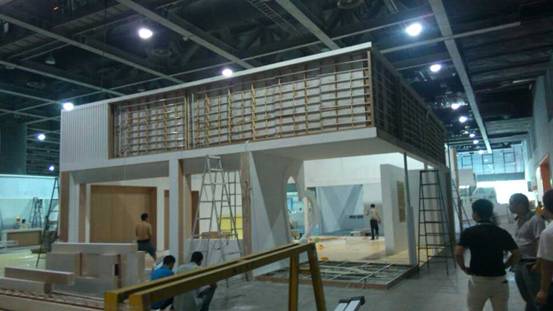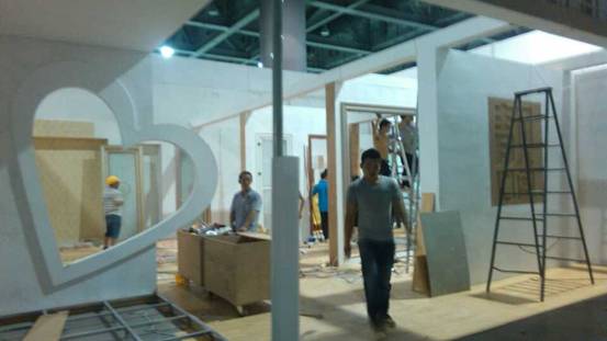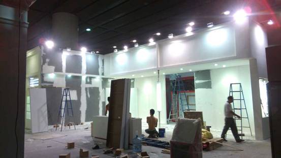 2014年廣州建材展施工進行中,畢加展覽全力以赴