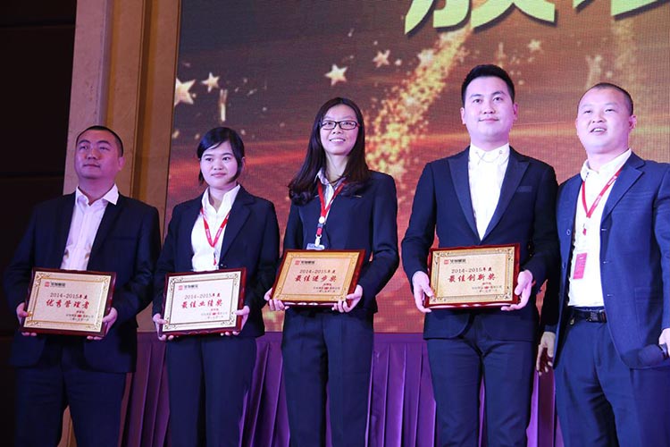 在畢加年會(huì)上,畢加展覽董事長兼總經(jīng)理戴俊吉為畢加優(yōu)秀員工們頒發(fā)了獎(jiǎng)項(xiàng),感謝他們在一年里為公司做出的貢獻(xiàn);為做好手上的工作不辭勞苦;為幫助同事們盡心盡力;因?yàn)樗麄兦谇趹┑墓ぷ鲬B(tài)度讓畢加其他同事認(rèn)可他們,這個(gè)獎(jiǎng)項(xiàng)是屬于你們的!