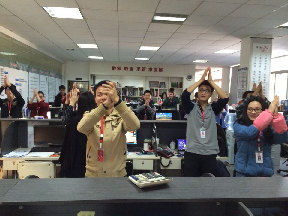 為了提高員工工作熱情,為了改善大家早上的工作狀態(tài)......今天,業(yè)務(wù)大廳突然熱鬧起來(lái),易總帶領(lǐng)大家跳起了抓錢(qián)舞。雖然大家是第一次接觸,但是新穎的形式讓還處于冬困中的大家興奮起來(lái)!音樂(lè)響起,大家都不由自主舉起手,抬起腳跟著屏幕跳起來(lái)。相信畢加這樣一個(gè)歡樂(lè)的氛圍能夠持續(xù)下去,大家每天有一個(gè)最好的精神狀態(tài)做好手頭上的工作,以最好的面貌迎接客戶的到來(lái),用最好的展臺(tái)設(shè)計(jì)方案和服務(wù)回報(bào)支持我們的客戶朋友。