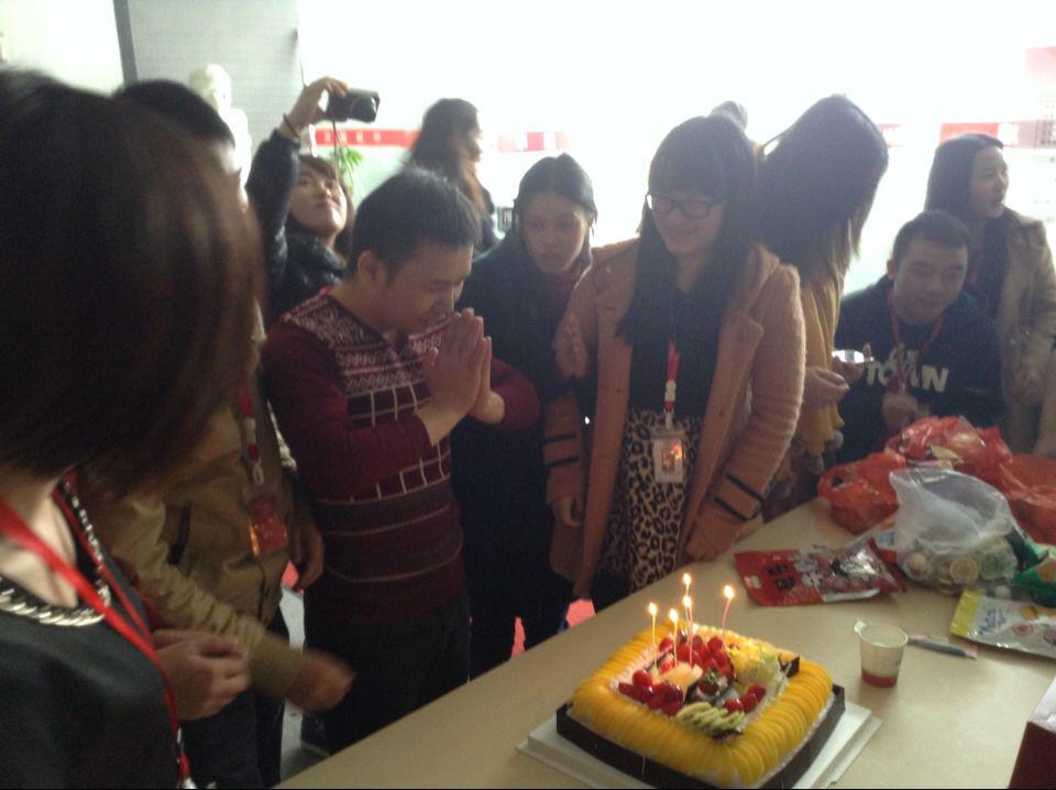 昨天,在畢加中庭全體同事為一群2015年1月生日的壽星舉行了生日派對(duì),生日會(huì)雖簡(jiǎn)單,但是同事們的祝福卻是多么的真誠(chéng),壽星們的愿望是多么的真切。隨后壽星們?cè)谟淇斓臍夥罩刑鹆恕白ュX舞”,不愧多才多藝。
