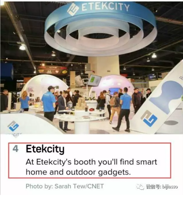 畢加曾在美國(guó)CES搭建的Etekcity展臺(tái)榮獲美國(guó)最大最知名媒體CNET中立評(píng)論排名第四 ,擊敗許多巨頭企業(yè)