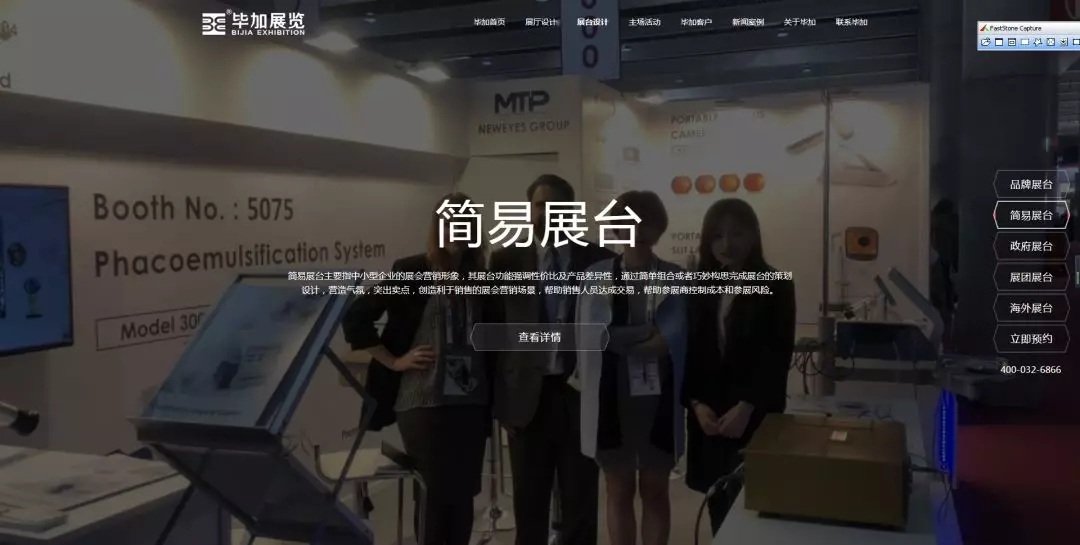 接著就是依次從展廳設(shè)計(jì)到展臺(tái)設(shè)計(jì)再到主場搭建,以提供客戶需求為己任,每個(gè)版塊分為五個(gè)詳情頁面,總共15個(gè)頁面,提供給客戶進(jìn)行參考,細(xì)閱。每個(gè)詳情頁面都有明確展示所需展會(huì)案例,讓整個(gè)網(wǎng)站具有國際化。