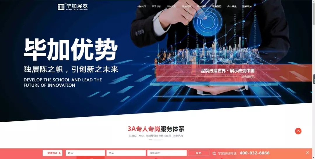 首頁中有合適的版塊幫助客戶對自身需求,快速進(jìn)入所需展廳、展臺(tái)、主場類型的詳情頁面,為解決客戶需求提供便利!每一個(gè)頁面的制作都是經(jīng)過精心設(shè)計(jì)的,以表達(dá)為主旨的設(shè)計(jì)理念,用智能化展示突破感官,以客戶的角度對網(wǎng)站進(jìn)行一個(gè)板塊式設(shè)計(jì),在給客戶帶來震撼效果的同時(shí),解決客戶的需求,達(dá)到最終營銷效果。