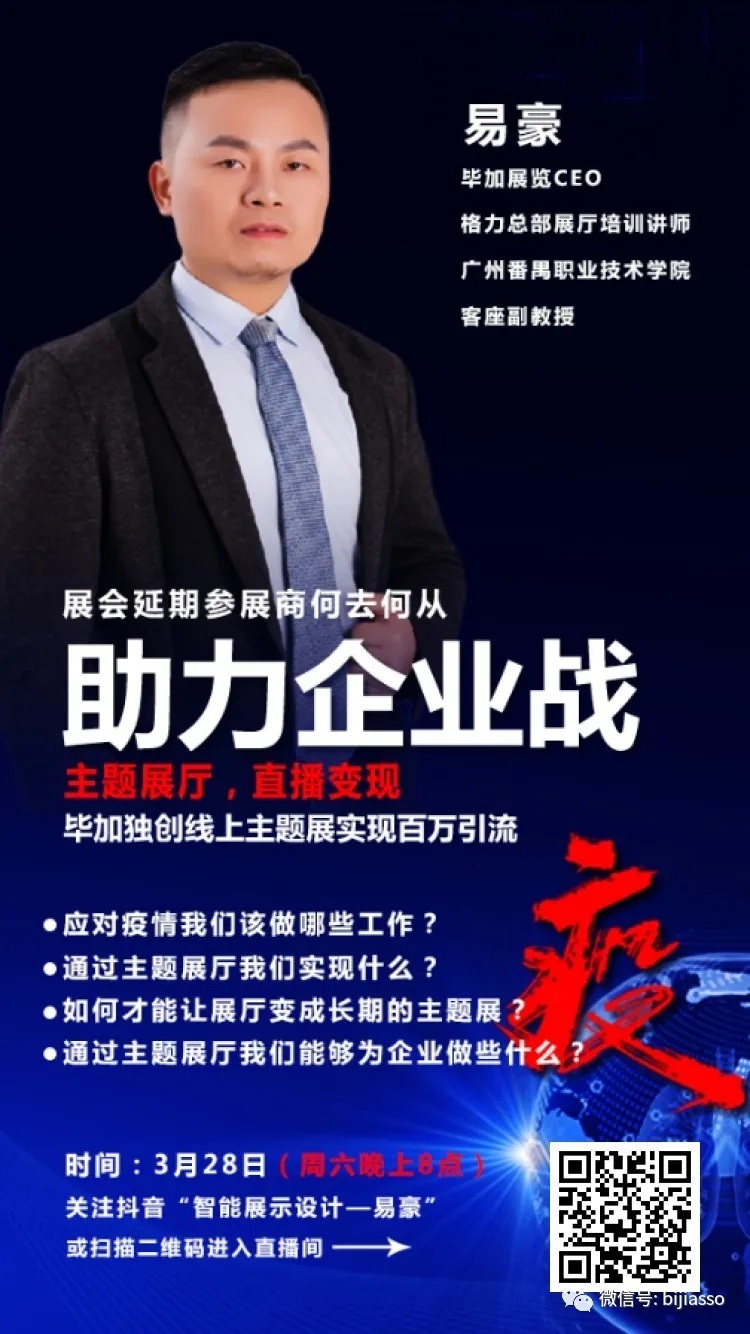 此次畢加展覽總裁易豪易總即將開播講解——“主題展廳如何實現(xiàn)百萬引流——結(jié)合線上實現(xiàn)展示營銷”,于2020年3月28日晚8點在小鵝通平臺直播呈現(xiàn)!