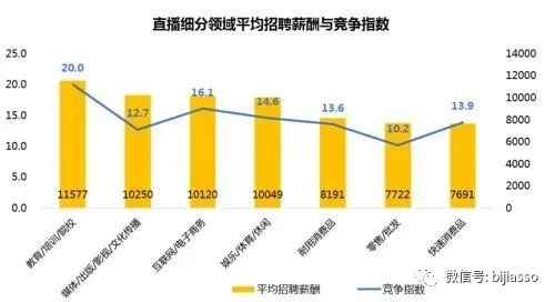 智聯(lián)招聘發(fā)布的《2020年春季直播產(chǎn)業(yè)人才報(bào)告》顯示,疫情下直播行業(yè)招聘需求同比逆勢(shì)上漲1.3倍,平均招聘薪酬9845元/月。負(fù)責(zé)直播界面設(shè)計(jì)、開(kāi)發(fā)、測(cè)試、運(yùn)維等多階段把控的直播產(chǎn)品開(kāi)發(fā)崗位以26076元/月的高薪位居薪酬第一;與教育行業(yè)直播崗位的高薪相呼應(yīng),直播教師的平均薪資達(dá)到11577元/月;作為招聘需求最高的“門(mén)面”,視頻主播/藝人的薪資為10188元/月。