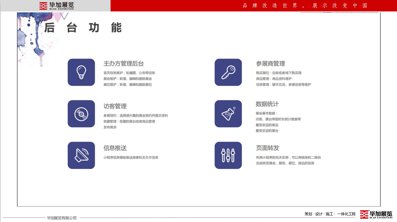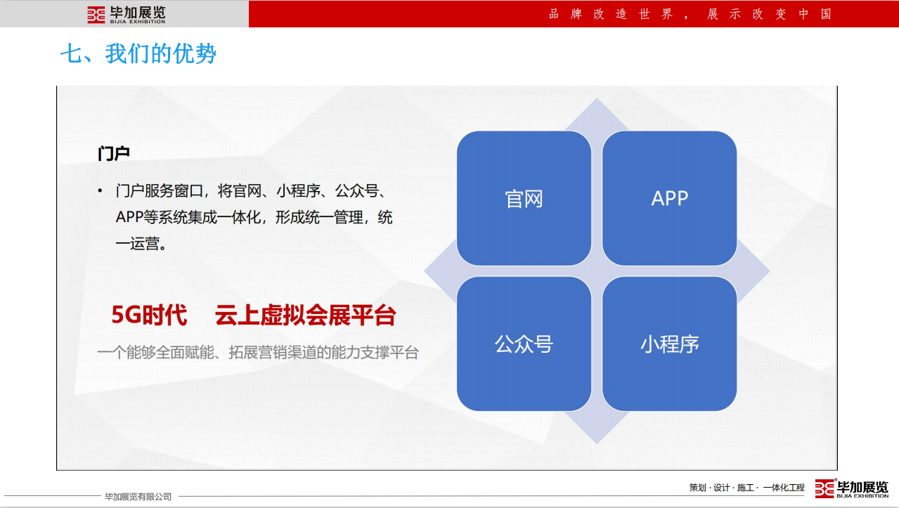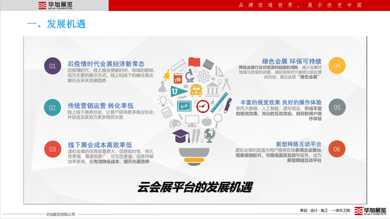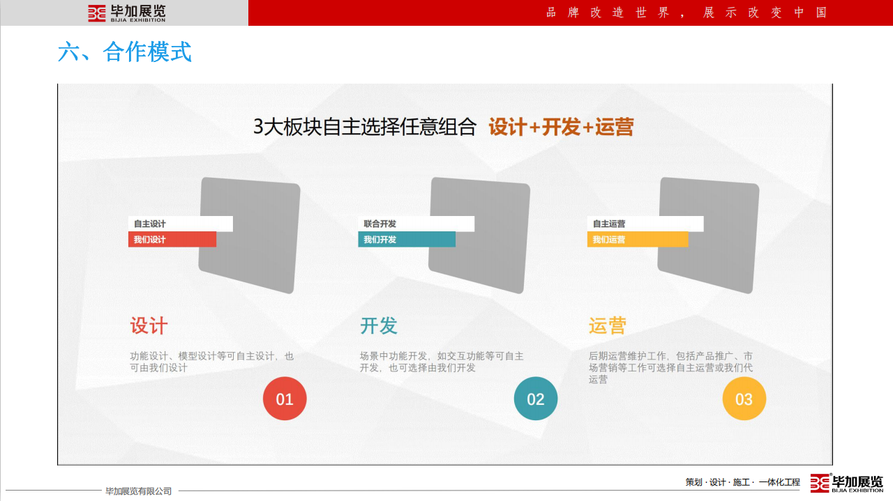 畢加展覽有限公司成立于2008年,注冊資金2000萬。12年專注于展廳博物館設(shè)計施工、展臺設(shè)計搭建、主場活動運(yùn)營策劃、展具專柜定制等專業(yè)服務(wù),獲得了中國展覽館工程一級、建筑裝飾總承包貳級,設(shè)計乙級等資質(zhì),是央視CCTV受邀專訪企業(yè),參與起草了中國國際促貿(mào)會《展覽會展臺術(shù)語》團(tuán)體標(biāo)準(zhǔn),并于2019年7月1日全國實(shí)施。畢加展覽在國內(nèi)外設(shè)有24個分子公司及辦事處,擁有100000㎡產(chǎn)業(yè)園和制作工廠,是一家展示營銷設(shè)計施工一體化的專業(yè)服務(wù)企業(yè)。畢加以十二年展示營銷領(lǐng)域成長的深厚基礎(chǔ),以企業(yè)成長發(fā)展必須的營銷和管理能力為支撐,為所有共生合伙人賦能,齊力筑造共生合伙平臺,創(chuàng)造共贏經(jīng)濟(jì)生態(tài)圈。