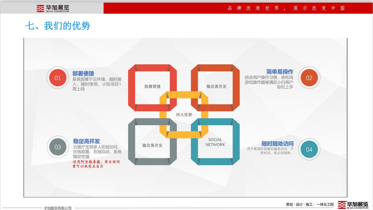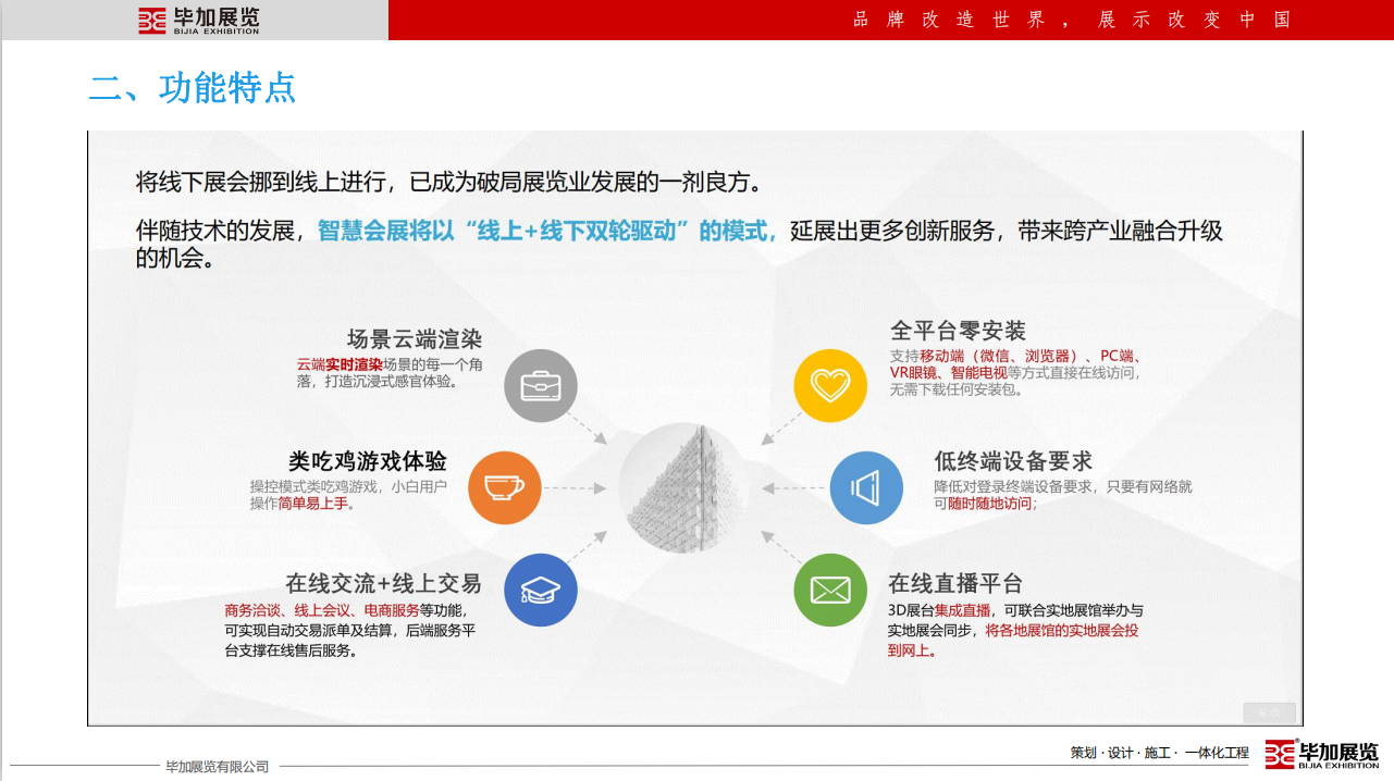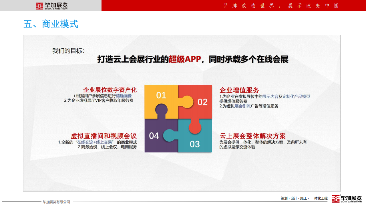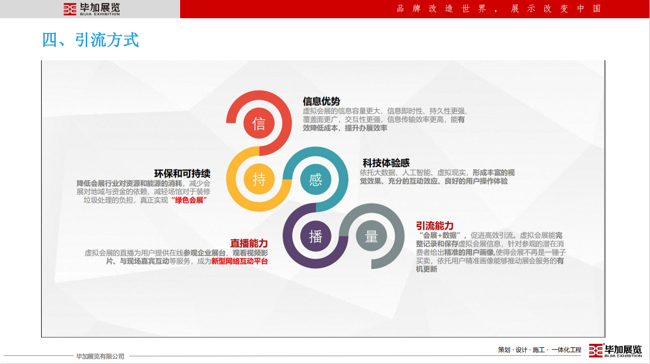 畢加展覽有限公司成立于2008年,注冊資金2000萬。12年專注于展廳博物館設(shè)計施工、展臺設(shè)計搭建、主場活動運(yùn)營策劃、展具專柜定制等專業(yè)服務(wù),獲得了中國展覽館工程一級、建筑裝飾總承包貳級,設(shè)計乙級等資質(zhì),是央視CCTV受邀專訪企業(yè),參與起草了中國國際促貿(mào)會《展覽會展臺術(shù)語》團(tuán)體標(biāo)準(zhǔn),并于2019年7月1日全國實(shí)施。畢加展覽在國內(nèi)外設(shè)有24個分子公司及辦事處,擁有100000㎡產(chǎn)業(yè)園和制作工廠,是一家展示營銷設(shè)計施工一體化的專業(yè)服務(wù)企業(yè)。畢加以十二年展示營銷領(lǐng)域成長的深厚基礎(chǔ),以企業(yè)成長發(fā)展必須的營銷和管理能力為支撐,為所有共生合伙人賦能,齊力筑造共生合伙平臺,創(chuàng)造共贏經(jīng)濟(jì)生態(tài)圈。