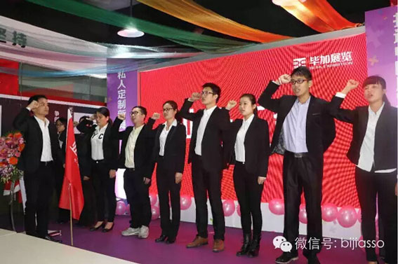 隨后又一位重量級人物——易豪,易副總經(jīng)理上臺進行2015年總結(jié)及2016年計劃。畢加展覽一路走來可謂風(fēng)雨交加,一句耳熟能詳?shù)脑挻蠹掖蟾哦贾?ldquo;不經(jīng)歷風(fēng)雨,怎能見彩虹”,現(xiàn)今的畢加展覽如此強大少不了多年來磨練;少不了各位高管的細心經(jīng)營與教導(dǎo);少不了默默為畢加付出的同事。。。。。。
