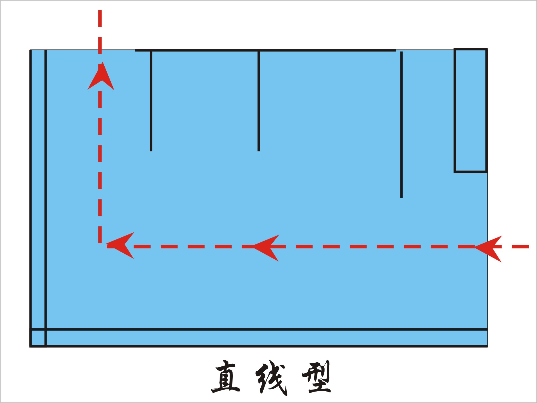 1、直線路線:是指平面布局中穿越式線路,空間的入口和出口在不同的兩側(cè),人流從入口進(jìn)入后,不論怎樣流動(dòng),最后都是從另一側(cè)出口離開,這種流線比較適合狹長(zhǎng)的室內(nèi)空間場(chǎng)所,空間主體一般都在兩側(cè)擺放,人流一般不會(huì)有太大沖突,是比較簡(jiǎn)單的流線形式。這種直線流動(dòng)的空間平面布局中大致分為兩種:一種是對(duì)稱式布局,采用這種布局,是流線通道明確,但略顯呆板,另一種是不對(duì)稱的,顯得錯(cuò)落有致,提高購物環(huán)境,引出潛在購物者。
