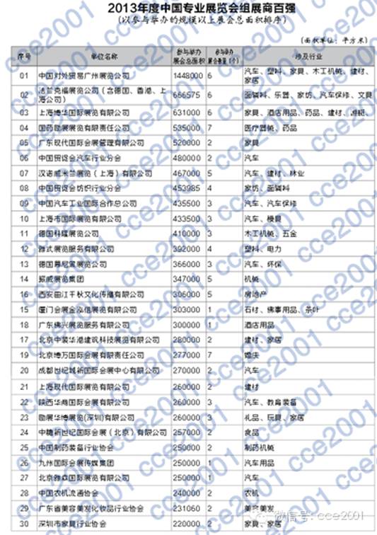 2013年度中國專業(yè)展覽會組展商百強(qiáng)名單