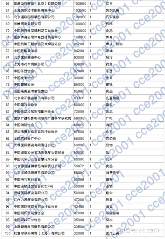 b) 政府主導(dǎo)展會、綜合性展會不在本次統(tǒng)計之列,因而其組織者也未被作為百強(qiáng)候選者;