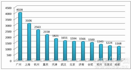 報告指出:我國會展教育集中度較高,廣州榮登首席寶座。2014年, 全國229所會展院校分布在66個城市。其中會展專業(yè)在校生人數(shù)超過1000人的有12個城市,在校生首位城市由廣州替代了上海,上海退居第二。3-12位依次是杭州、重慶、天津、武漢、北京、濟南、合肥、鄭州、石家莊、成都(圖4)。12市在校生合計為23722人,占全國56.7%。其中教育規(guī)模超過2000人的廣州、上海、杭州、重慶4市,就占了全國的1/3(32.7%)。