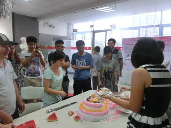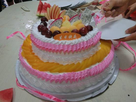 “祝你生日快樂(lè)!祝你生日快樂(lè)!”、“許個(gè)愿吧!”、“ 謝謝!感謝公司的關(guān)心!”9月1日,伴隨著“生日快樂(lè)”的樂(lè)曲,畢加展覽公司總經(jīng)理戴俊吉代表公司全體同仁為員工肖麗珠送上了專門定制的生日蛋糕并親自祝辭,在大家的注視下我們的壽星許下了美好的愿望并吹滅了生日蠟燭。