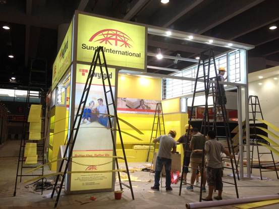 現在,讓畢加小編帶您去看一下畢加2014秋季廣交會的展臺施工現場吧: