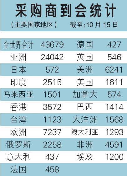 截止15日,第116屆廣交會(huì)廣交會(huì)官網(wǎng)統(tǒng)計(jì),當(dāng)天采購商到會(huì)統(tǒng)計(jì)達(dá)43679人次。