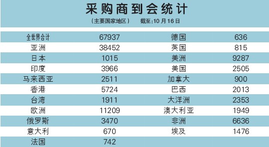 截止16日,第116屆廣交會(huì)廣交會(huì)官網(wǎng)統(tǒng)計(jì),當(dāng)天采購商到會(huì)統(tǒng)計(jì)達(dá)67937人次。