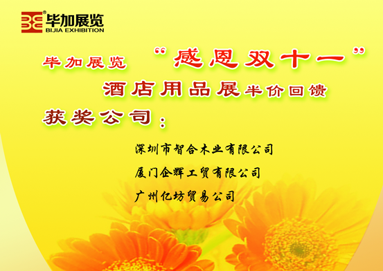 雙十一畢加酒店用品展半價(jià)回饋客戶活動(dòng)中獎(jiǎng)名單公布