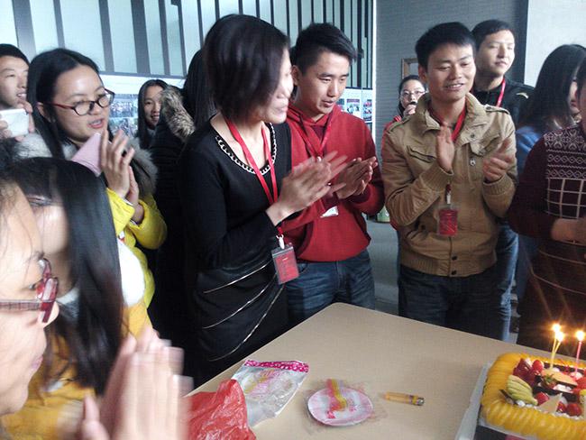昨天,在畢加中庭全體同事為一群2015年1月生日的壽星舉行了生日派對(duì),生日會(huì)雖簡單,但是同事們的祝福卻是多么的真誠,壽星們的愿望是多么的真切。隨后壽星們?cè)谟淇斓臍夥罩刑鹆恕白ュX舞”,不愧多才多藝。