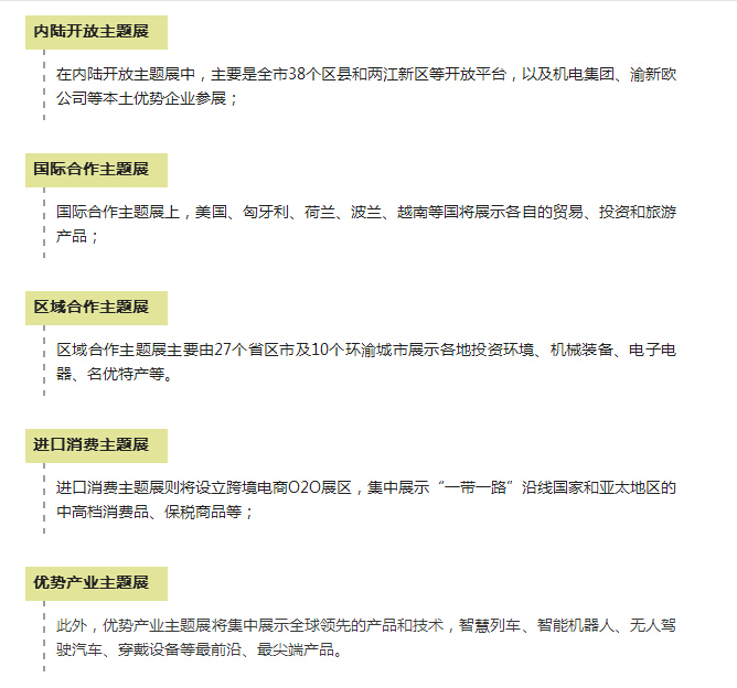 5個(gè)主題展、5類經(jīng)貿(mào)交流和對接、兩場新聞發(fā)布會(huì)和N場區(qū)域合作專場簽約。