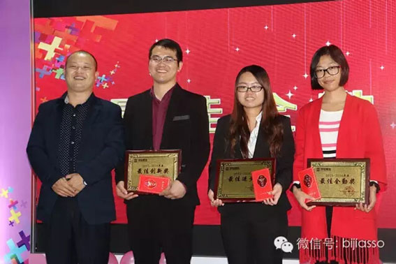 不要著急,還有三個(gè)最佳獎(jiǎng)項(xiàng),榮獲2015年度最佳創(chuàng)新獎(jiǎng)的是加索工廠總經(jīng)理王春才,王廠在型材以及新型材料的應(yīng)用摸索上,放眼全公司,亦或是戴總易總,他們都沒有這方面的經(jīng)驗(yàn),所以王廠無論實(shí)在推廣型材創(chuàng)新,新型材料的發(fā)展及應(yīng)用上面都是第一人,創(chuàng)造了很多新的運(yùn)用方法和技巧。型材必定是展覽行業(yè)的趨勢,在王廠的悉心經(jīng)營下,越來越多展商找到了我們要求進(jìn)行型材搭建;