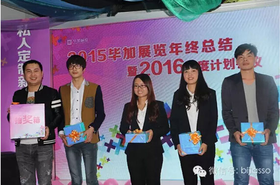 有個(gè)人獎(jiǎng)必定有團(tuán)隊(duì)獎(jiǎng),那么榮獲2015年度畢加展覽業(yè)務(wù)團(tuán)隊(duì)獎(jiǎng)的是由李朱妹帶領(lǐng)的業(yè)務(wù)一部,一群90后證明他們是實(shí)力派。