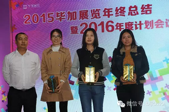 有業(yè)務(wù)部肯定少不了設(shè)計(jì)部,設(shè)計(jì)大神們你們真的準(zhǔn)備好了嗎?2015年度榮獲畢加展覽設(shè)計(jì)業(yè)績冠軍獎(jiǎng)的是我們的創(chuàng)意設(shè)計(jì)師郭靖莉。在2015年的努力下,小郭定會(huì)在2016年變得更高大,2016年加油哦。