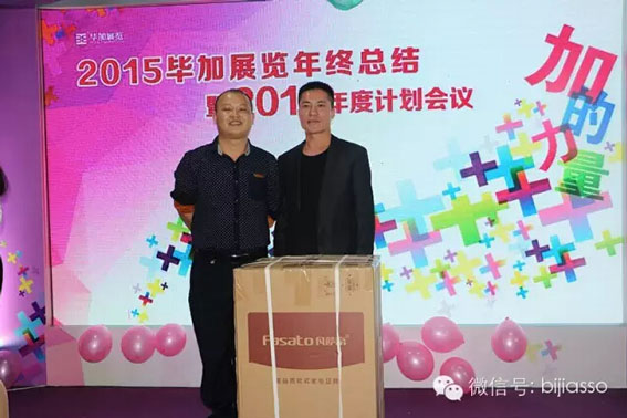 緊接著頒發(fā)的是畢加集團(tuán)個(gè)人業(yè)績冠軍獎(jiǎng),榮獲畢加展覽2015年度集團(tuán)個(gè)人業(yè)績冠軍獎(jiǎng)的是墨戈畢加總經(jīng)理,畢加項(xiàng)目部總監(jiān)楊興強(qiáng)楊總。不錯(cuò),真的是項(xiàng)目部,真的是耶,就是項(xiàng)目部。