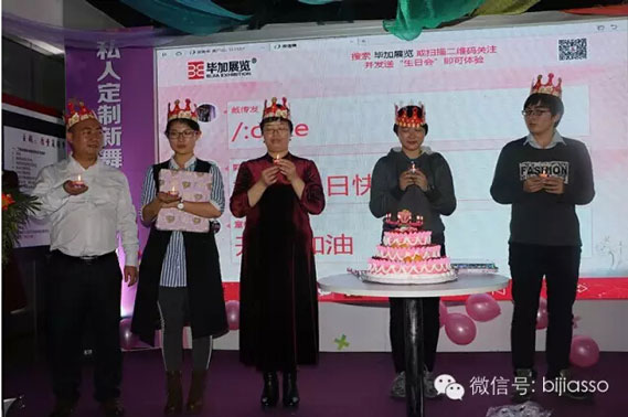 借此特殊的日子,畢加公司每月的生日會(huì)也在這里隆重舉行。展覽大部的大BOSS李春忠李副總,財(cái)務(wù)部和藹可親平易近人的珍姐,元?dú)馍倥x靈,項(xiàng)目部知性女青年常曼青,以及最后至簡科技的帥伙子張楚文。